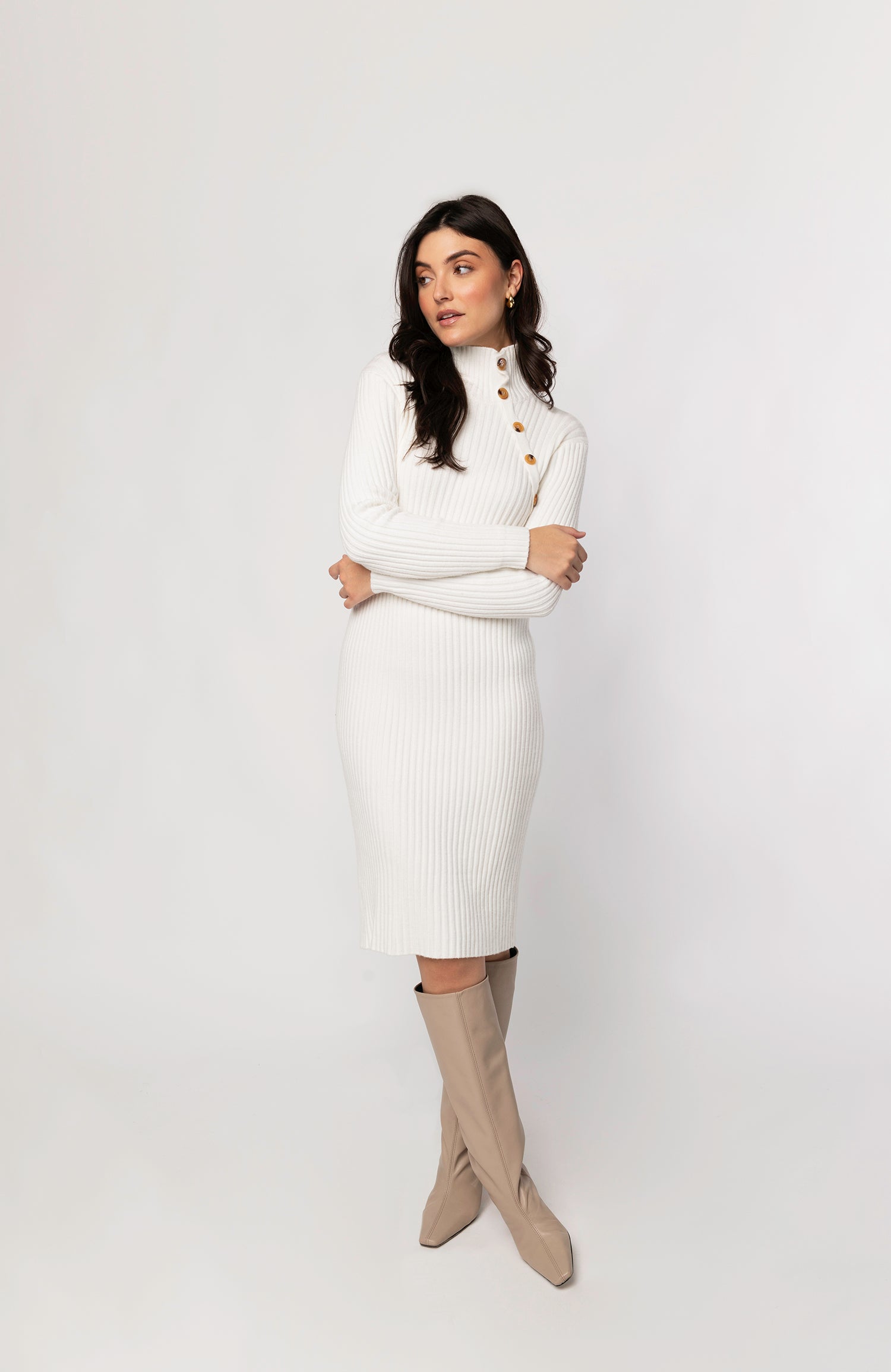 - white ribbed knit dress